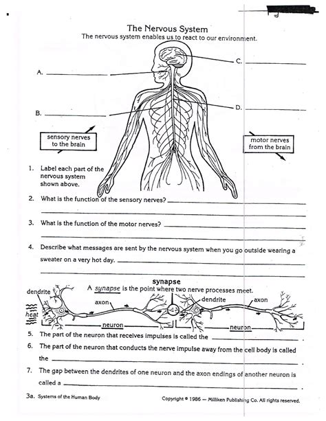 Web some of the worksheets for this concept are nervous system work, nervous system 5th grade, nervous system, teachers guide nervous system grades 3 to 5, grade 5 the brain and nervous system lesson 1 the brain, human nervous system cloze work, nervous system work, an introduction to the nervous system. Worksheets are nervous system work, teachers guide nervous system grades 3 to 5, an introduction to the nervous system, grade 5 life science unit, the nervous system, chapter 12 central nervous system, the nervous system morata, nervous system. Web the nervous system worksheet nervous system id: