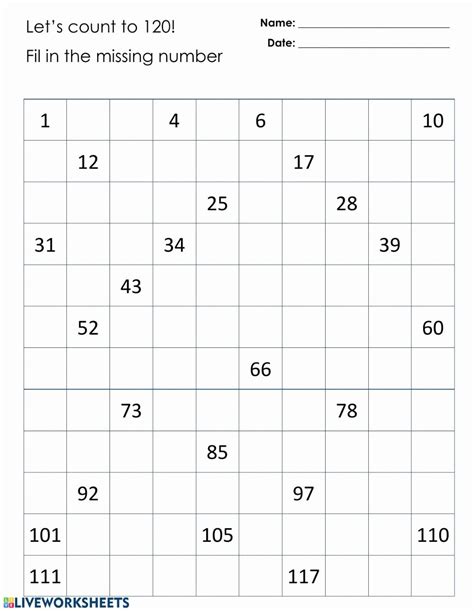 Each 120 chart is missing out on different numbers that must be written by the. Web numbers worksheets and online activities. Live worksheets > english > math > place value > numbers to 120.
