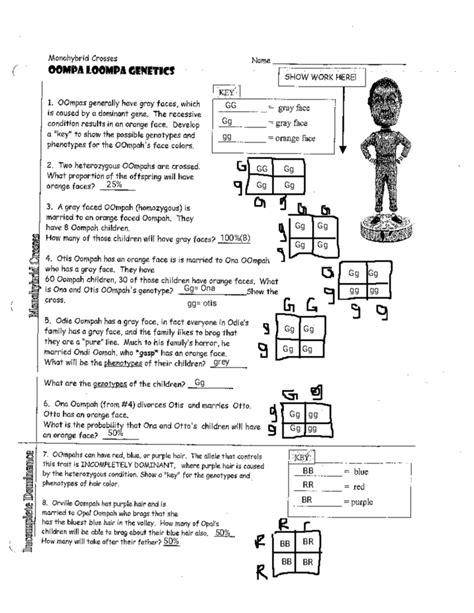 This worksheet has 12 problems to solve. Oompas generally have gray faces, which key _____ = gray face is caused by a dominant gene (d). Worksheets are oompa loompa genetics work answers, monohybrid crosses oompa loompa genetics work answe.