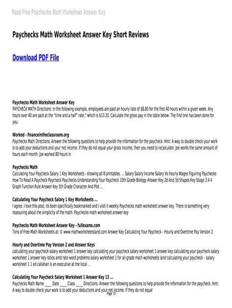 Answer the following questions to help provide the information for the paycheck. All you need is an internet connection. Web paychecks math worksheet answer key :