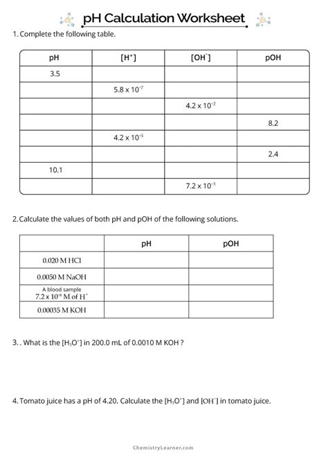 Ph Calculations Worksheet With Work. The packet includes 42 engaging worksheets which allow students to practice writing digraphs, reading. Web a ph value of more than 7 indicates a(n) _____ solution.