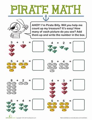 Web Pirate Math Worksheets Preschool Addition Practice.