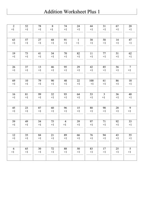 Plus 1 Addition Worksheets Math Worksheets Printable from mathworksheetprintable.com